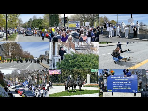 Es hieß, “100.000 Menschen standen heute auf, um die Gesundheitsmaßnahmen in Montreal in Frage zu stellen.”