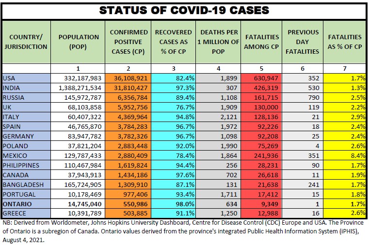Here we provide a daily update of the data available for select countries and jurisdictions as of August 4, 2021, at 4:30pm EST.