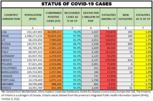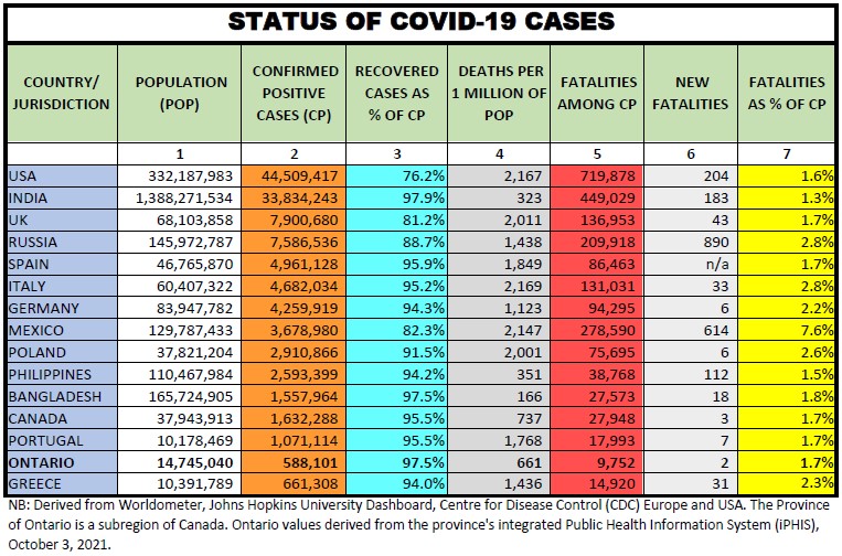 Here we provide a daily update of the data available for select countries and jurisdictions as of October 3, 2021, at 4:45 pm EST.