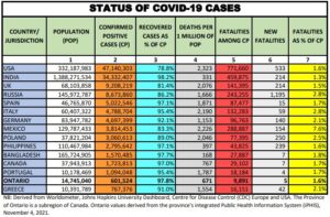 Here we provide a daily update of the data available for select countries and jurisdictions as of November 4, 2021, at 4:30 pm EST.