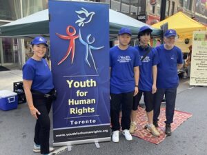 Volunteers with the Youth for Human Rights organization were seen handing out “What are Human Rights” booklets and gathering signatures for a petition addressed to the Legislative Assembly of Ontario requesting that these 30 human rights be taught in schools with the aim of creating a foundation for freedom, justice and peace.