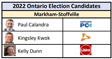 Incumbent Paul Calandra, a former Member of Parliament, seeks re-election as MPP for Markham-Stouffville. He has represented the riding since his victory in the 2018 election when he won with 48% support of the electorate (25,912 votes). Calandra defeated then Liberal candidate Helena Jaczek, who took 26% of the vote. The PC’s margin of victory was 11,905 votes.