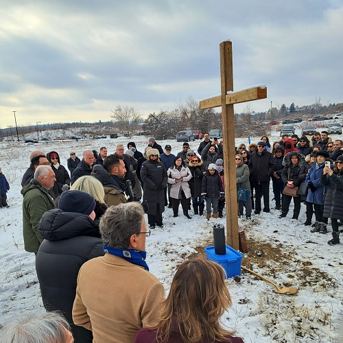 MAPLE – Under crisp January skies, the Catholic community of Maple witnessed a momentous milestone on Saturday, January 11, 2025. At 1 p.m., more than 150 attendees, including Bishop Boussonneau, prominent government dignitaries, and several benefactors, gathered at the Church site at Major Mackenzie Drive and Thomas Cook Avenue for the long-awaited Soil Turning Ceremony.