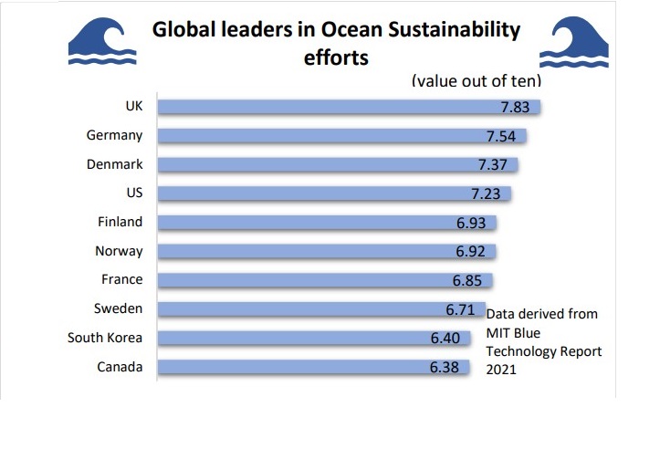 The study ranked 66 “coastal” countries and territories (those bordering seas and oceans) in several areas including their progress and commitment towards sustainability by protecting the ocean environment through technology innovation and effective government policies.