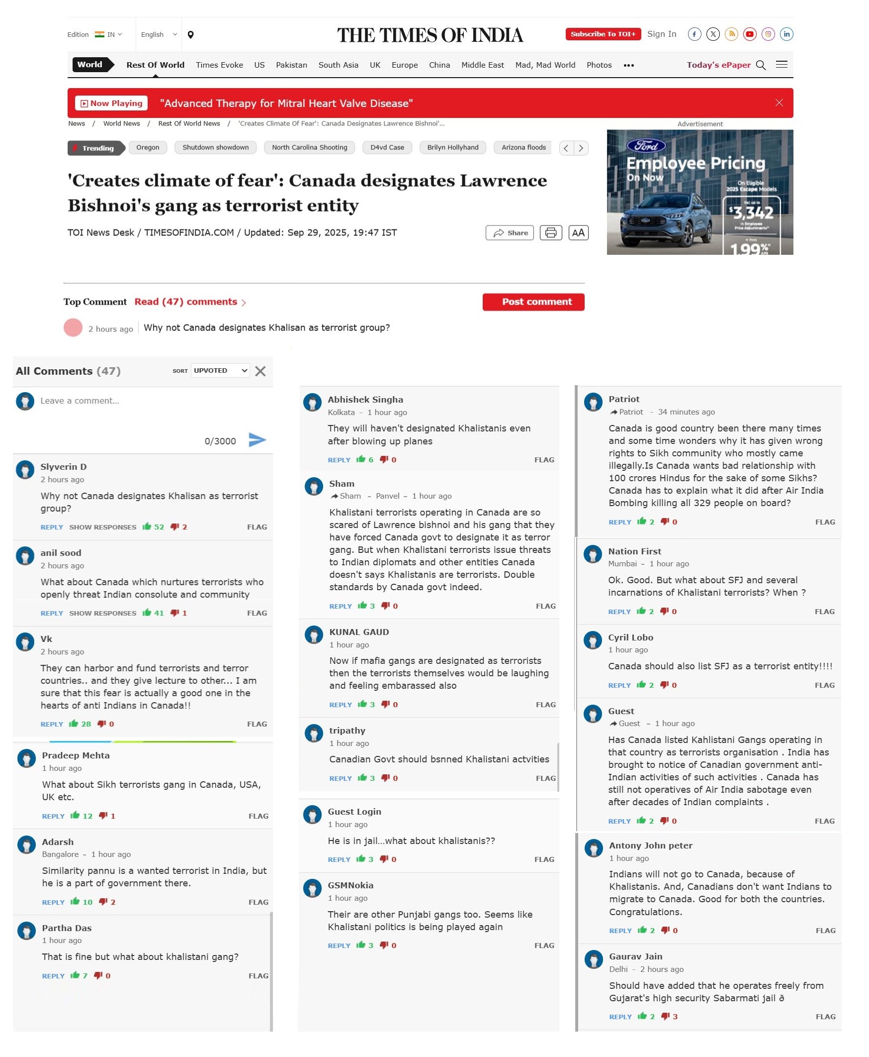 Canada lists the Bishnoi Gang as a “terrorist entity”. Comments from India: “Well done, what about the Khalistanis?”