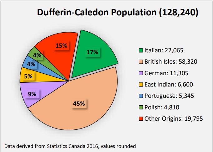 In fact, Statistics Canada says 22,065 constituents identify as Italian (as at 2017). That represents 17% of the district’s population and one of the largest concentrations of Italian Canadians among Ontario’s 124 electoral districts. (See graph above)