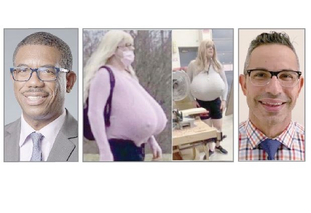 A case in point is the Oakville teacher in the Halton District School Board (HDSB) who drew international attention [unanimously negative] for his/her preferred mode of attire: wearing gigantic breast prosthetics – “in accordance with their lived gender”, in a classroom (in the pics below, from social networks).