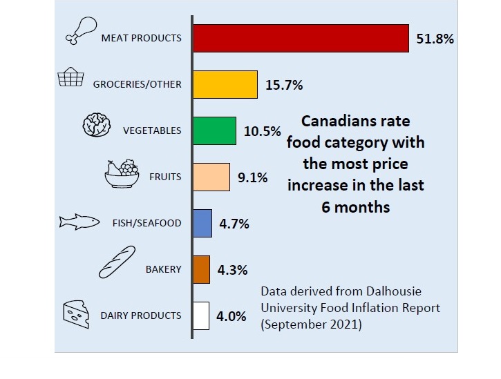 In a survey conducted by the Dalhousie’s Agri-Food Analytics Lab (Fall 2021), in partnership with Caddle, a data insights platform, roughly 86% of Canadians surveyed have noticed food prices are higher than six months ago. It is a tough morsel to swallow, especially for carnivores.