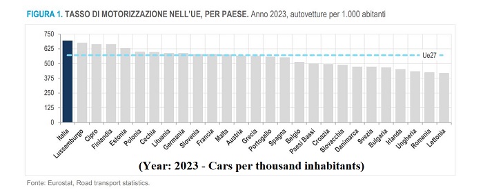 ROMA – L’Italia è sempre stato un Paese di automobilisti (del resto è la patria di Ferrari e Lamborghini). Ma oggi lo è più che mai: nel 2023, infatti, il BelPaese ha registrato il più alto tasso di motorizzazione dell’Unione Europea, con 694 autovetture registrate ogni 1.000 abitanti contro una media Ue di 571…
