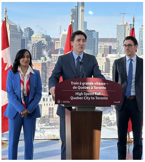 TORONTO – Non ci è voluto molto! Prima che la nebbia si diradasse dagli obiettivi delle telecamere, i critici hanno iniziato ad accumulare disappunto e critiche sull’annuncio di Justin Trudeau relativo ad una linea ferroviaria ad alta velocità (HSR) da Toronto a Quebec City (via Ottawa e Montreal, ovviamente)…
