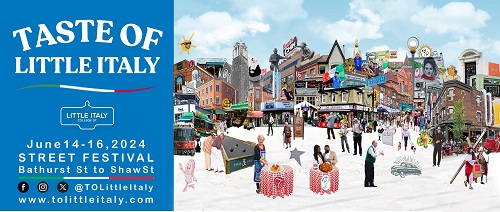TORONTO – Proseguono a Toronto le manifestazioni dedicate all’Italianità, alla quale il Canada dedica, ogni anno, l’intero mese di giugno. Questo weekend sarà la volta di “Taste of Little Italy”: venerdì 14, sabato 15 e domenica 16 giugno, la zona di College Street compresa fra Bathurst Street e Shaw Street (storicamente, il quartiere degli Italiani a Toronto), ospiterà una serie di eventi fra musica, spettacoli e stand gastronomici per celebrare la grande comunità italiana e le eccellenze del made in Italy…