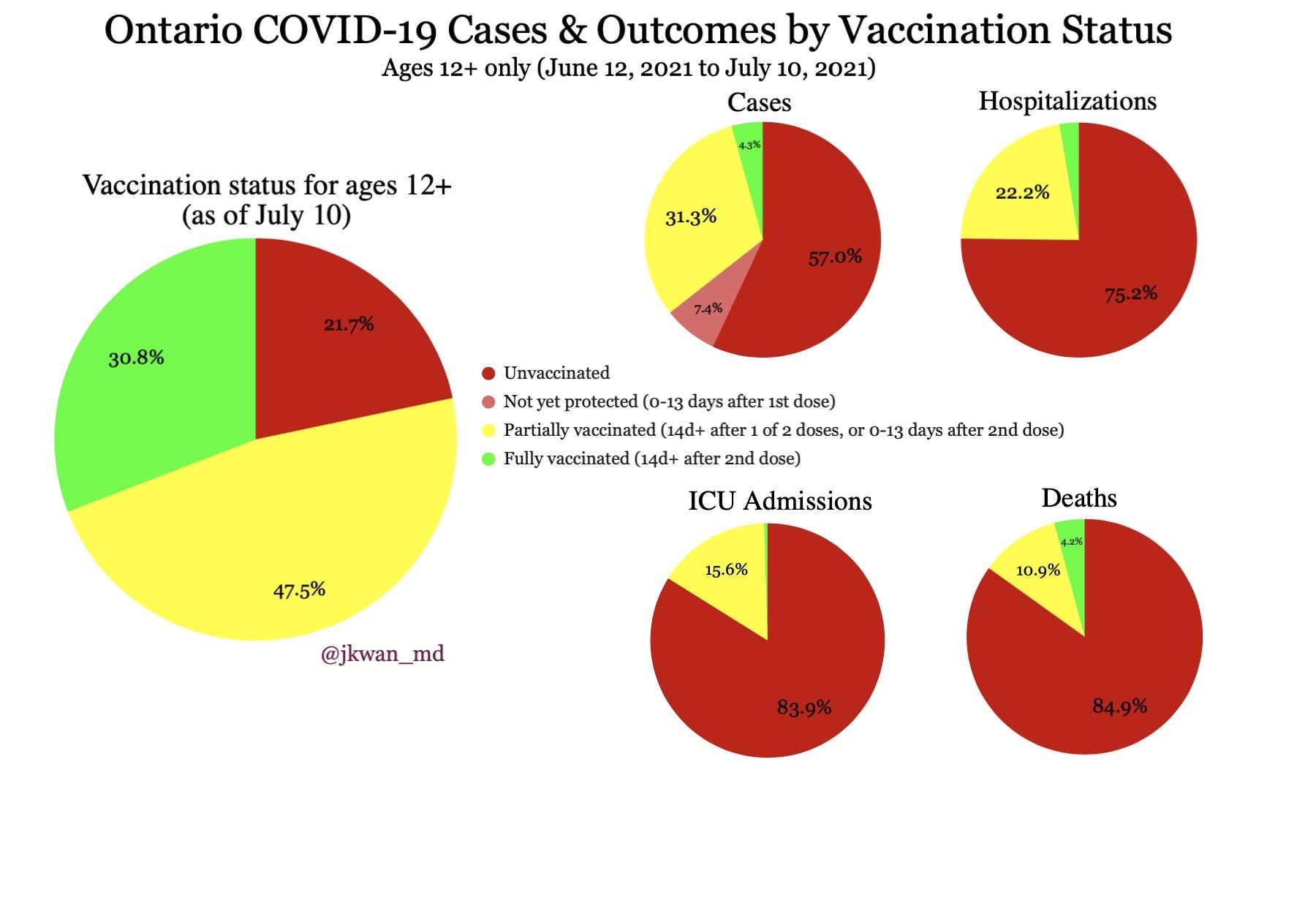Well, from the data collected by the epidemiological reports of public health of Ontario, Kwan’s research shows, scientifically, that in the period between June 12 and July 10, 95.7% of cases, 97.4% of hospitalizations , 99.5% of ICU admissions and 95.8% of deaths occurred in unvaccinated or partially vaccinated patients.