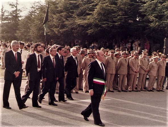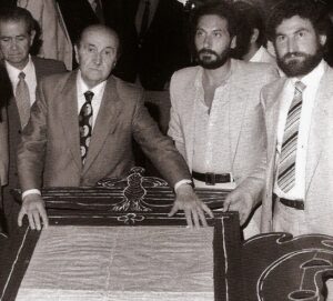 Perdonanza 1983: il sindaco Tullio De Rubeis con Errico Centofanti e Goffredo Palmerini