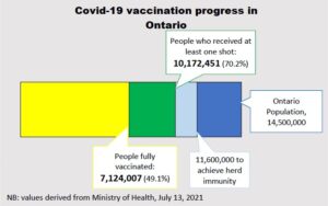 With the largest vaccination campaign underway, the province has administered more than 17.2 million doses into the arms of Ontarians. On July 13, numbers released by the Ministry of Health show health officials administered 176,834 vaccine doses on Monday, up from 121,653 doses the day prior.