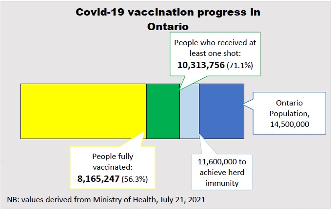 With the largest vaccination campaign underway, the province has administered more than 18.4 million doses into the arms of Ontarians. On July 21, numbers released by the Ministry of Health show health officials administered 140,491 vaccine doses on Tuesday, up from 132,263 doses the day prior.