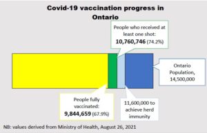 With the largest vaccination campaign underway, the province has administered more than 20.6 million doses into the arms of Ontarians. On August 26, numbers released by the Ministry of Health show health officials administered 38,932 vaccine doses on Wednesday, down from 40,254 doses the day prior.