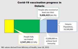 With the largest vaccination campaign underway, the province has administered more than 12.1 million doses into the arms of Ontarians. On June 18, numbers released by the Ministry of Health show health officials administered 210,638 vaccine doses on Thursday, up from 210,611 doses the day prior.