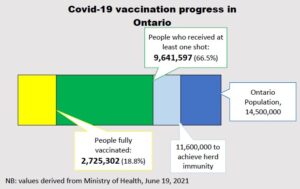 With the largest vaccination campaign underway, the province has administered more than 12.3 million doses into the arms of Ontarians. On June 19, numbers released by the Ministry of Health show health officials administered 213,236 vaccine doses on Friday, up from 210,638 doses the day prior.
