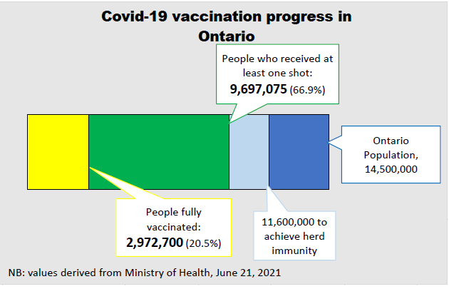 With the largest vaccination campaign underway, the province has administered more than 12.6 million doses into the arms of Ontarians. On June 21, numbers released by the Ministry of Health show health officials administered 118,625 vaccine doses on Sunday, down from 184,251 doses the day prior.
