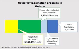 With the largest vaccination campaign underway, the province has administered more than 13.3 million doses into the arms of Ontarians. On June 24, numbers released by the Ministry of Health show health officials administered 225,188 vaccine doses on Wednesday, down from 227,318 doses the day prior.