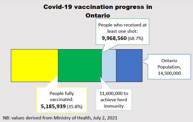 With the largest vaccination campaign underway, the province has administered more than 15.1 million doses into the arms of Ontarians. On July 2, numbers released by the Ministry of Health show health officials administered 145,674 vaccine doses on Thursday, down from 267,687 doses the day prior.
