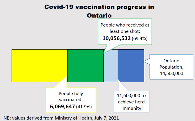 With the largest vaccination campaign underway, the province has administered more than 16.1 million doses into the arms of Ontarians. On July 7, numbers released by the Ministry of Health show health officials administered 204,594 vaccine doses on Tuesday, down from 215,719 doses the day prior.
