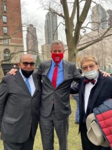 “Sono molti i progetti legati ai 700 anni della morte del Sommo poeta”, dichiara da New York Berardo Paradiso. “A parte lo IACE ci sono i Consolati italiani , gli istituti Italiani di Cultura , le società Dante Alighieri e molti Atenei Americani a ricordare il padre della lingua Italiana con seminari e manifestazioni .Qui a New York presso il Lincoln Center c’è un piccolo parco con una statua di Dante Alighieri ; a fine marzo con il Sindaco di New York De Blasio ed un gruppo di promotori della lingua e cultura italiana, tra cui il poeta Luigi Ballerini , abbiamo inaugurato le festività Dantesche con lettura di sonetti della Divina Commedia. In Italia con l’amico maestro Giuseppe Leone, che dirige l’associazione Exordium, e Mario Esposito del Premio “Penisola Sorrentina” stiamo attivamente collaborando su un prestigioso concorso di opere visive e fotografico su Dante. Sono particolarmente orgoglioso di poter avere tra i giurati del concorso due personaggi internazionali : il docente e poeta Luigi Ballerini, noto come scrittore , critico d’arte , poeta e traduttore, ed il fotografo Charles H. Traub” (nella foto sotto, il presidente Iace Berardo Paradiso, Bill De Blasio e il membro di giuria del premio poeta Luigi Ballerini).
