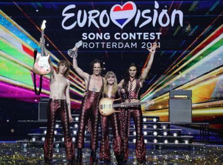 Damiano David (voce), Victoria De Angelis (basso), Thomas Raggi (chitarra) ed Ethan Torchio (batteria), che suonano insieme dal 2016 quando iniziarono ad esibirsi nelle strade di Roma, con il loro brano hard rock hanno trionfato, nella serata finale svoltasi ieri (22 maggio 2021) a Rotterdam in Olanda, con 524 voti, di cui 318 ricevuti dal televoto. Seconda classificata della kermesse in scena alla Ahoy Arena, la Francia con 499 punti, terza la Svizzera con 432.