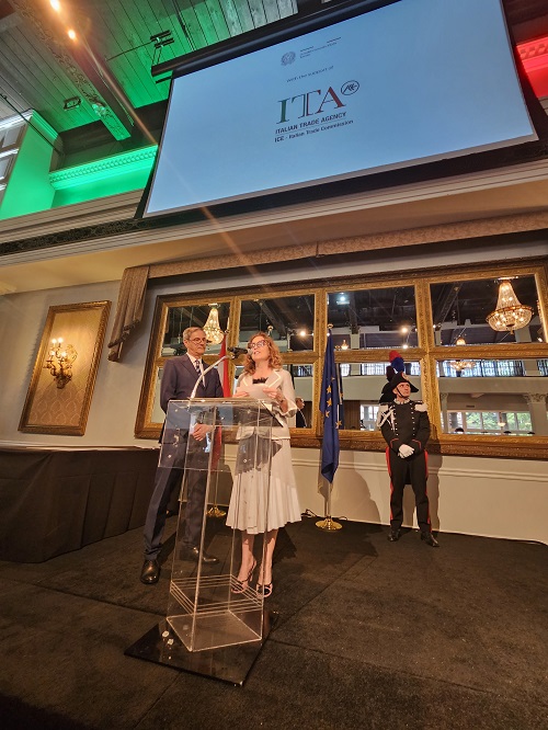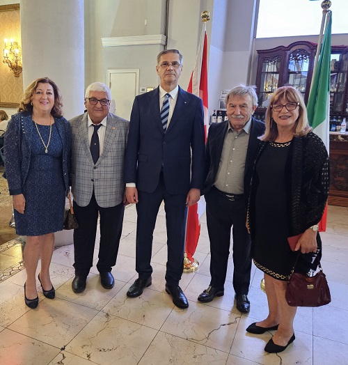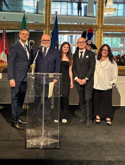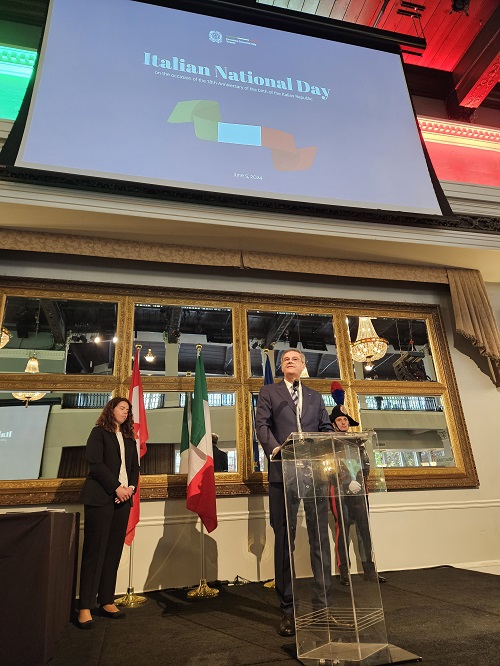 A video sent for the occasion by the Italian Deputy Prime Minister and Foreign Minister Antonio Tajani was also broadcast. Zelioli himself then presented the Italian National Day awards to Stefano Riolo, Domenico Siniscalco and Deborah Verginella who collected the award for her husband Corrado Paina, former Director of the Ontario Chamber of Commerce, who recently passed away.