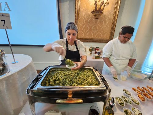 The guests – around five hundred people present – were welcomed by the Consul General Luca Zelioli, the Consul Giulia Romani and the Director of the Italian Cultural Institute of Toronto, Veronica Manson (in the video above, a moment of the “welcoming”), in a Governor’s Room illuminated in white-red-and-green and pervaded by the delicious aromas of the many culinary delicacies prepared on site, live, by many of the protagonists of Italian restaurants in Toronto and in the GTA: all of this, while a string quartet made the notes of some of the most beautiful Italian melodies resonate in the air.