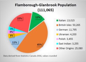 The area is unique in character as it covers a vast region, that is geographically diverse and home to 111,065 residents of several different cultural and ethnic backgrounds. According to the most recent data available, (2016 Census), Italians, at 12% of the population, make up the largest concentration of individuals in the region who originate from Europe.