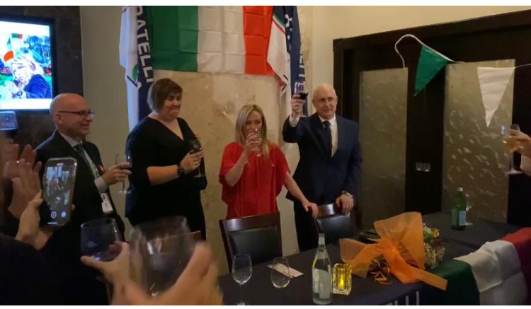 The reference to the value of sacrifice was underlined also by the President of the Tricolor Committee for Italians in the World (Comitato Tricolore per gli Italiani nel Mondo – CTIM), Vincenzo Arcobelli (present together with the delegates Anna Zuccarone, Pasquale Cetera – in the photo above, during the toast with Meloni – and other participants from Florida) in his welcome to the Honorable Giorgia Meloni accompanied by the European delegation: Arcobelli in fact highlighted “the sufferings, the denigrations, the sacrifices made in the past in the field of work by the Italians, but above all the path of integration and the successes obtained by the many who have distinguished themselves and are distinguishing in the most varied fields, from industry to scientific research, from aerospace to medicine, from art to food; and all this with the pride of national identity, the promotion of our language and culture, of made in Italy, with the defense of the Italian heritage and of our symbols against the madness of the ‘cancel culture’ “.