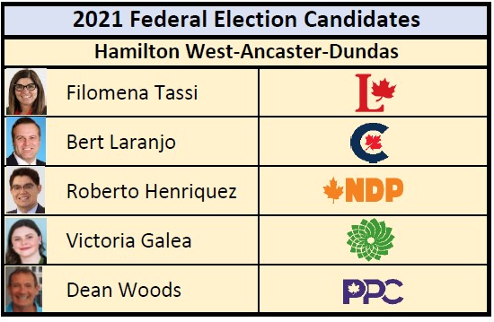 Filomena Tassi, current MP, is seeking re-election for the Liberals. She has represented the riding since 2015 and was re-elected in 2019 with 46.5% of the vote. She beat out Conservative candidate Bert Laranjo who took 26.7% of the vote, followed by NDP with 17.7%.