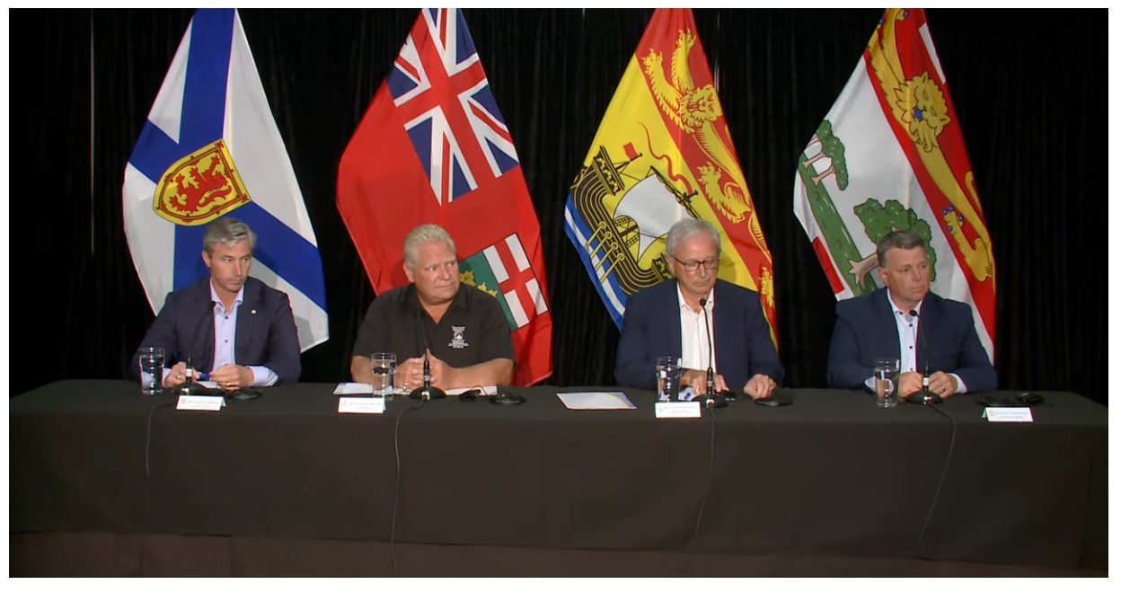 A situation in collapse, this, the subject of discussion at today’s summit in Moncton between the Premier of Ontario Doug Ford, that of New Brunswick Blaine Higgs, of Prince Edward Island (P.E.I.) Dennis King and Nova Scotia Tim Houston (in the pic above).