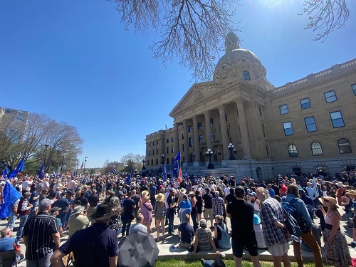 In the photo above: separatist protesters in front of the Alberta Legislature, in Edmonton (photo from Twitter X – @albertaseparate)