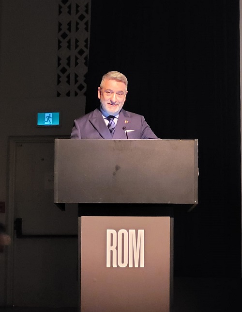 Ontario Minister Paul Calandra, a special guest, was straight-forwardly incisive in his opening remarks about the significance of the mosaics in the vaulted ceiling of the ROM’s entrance. “I am forever grateful that Canda opened its doors to us,” he said, “even if its society was not always welcoming”.