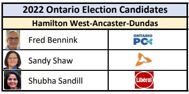 This time around, challengers in the riding will try to unseat MPP Shaw. Candidate Fred Bennink aims to garner more support for the PC while Shubha Sandill aims to do the same for the Liberals. Also joining the race are candidates Syam Chandra and Lee Weiss Vassor for their respective parties, the Greens and the New Blue. This will be the first time all candidates face off in a general election.