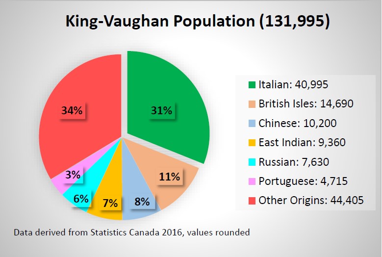 According to the 2016 Census, King-Vaughan is home to 131,995 residents. It is a riding with one of the highest concentrations of Italian-Canadians. Roughly 40,955 constituents are of Italian origin, that represents 31% of the area’s population.