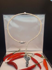 La collana in questione (nella foto sopra) rappresenta dunque un omaggio alla Calabria. Una “Calabria che si indossa”, che adesso è in esposizione alla gioielleria “Vibo Jewellery” di Domenic Caputo in 3737 Major Mackenzie a Toronto. Ogni monile sarà numerato e realizzato in “argento, seta e ginestra” e potrà essere ammirato, prossimamente, anche a Rio de Janeiro, in Brasile, a Mar de Plata, in Argentina, ed a Melbourne, in Australia. Il messaggio è forte e dirompente: la Calabria rappresenta l’identità, le radici e l’orgoglio di tutti quei calabresi sparsi in ogni parte del mondo.