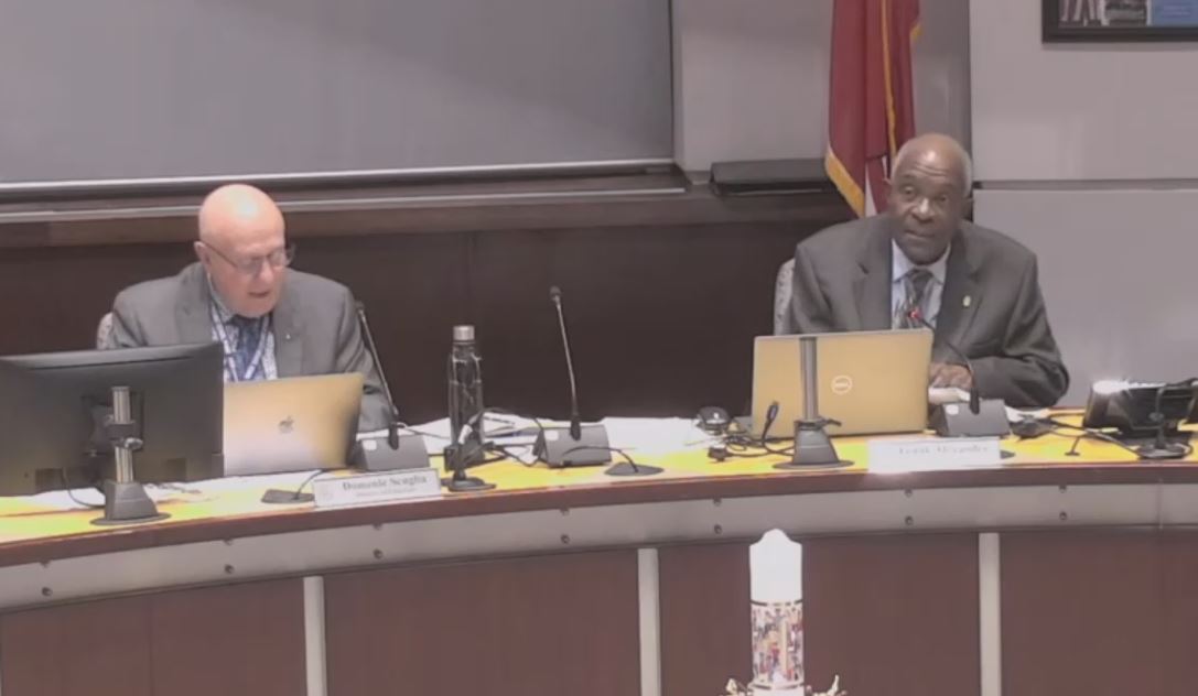 Scuglia persisted, saying that the issue of raising the flag was in his Report so he would be speaking to it anyway. To which defiance Alexander said something to the effect that the Board has a procedure for policy changes that he demands be respected. The video is no longer online.