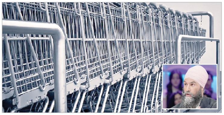In the pics above: shopping carts (photo by 652234 from Pixabay) and the leader of the NDP, Jagmeet Singh (from Twitter X – @theJagmeetSingh)