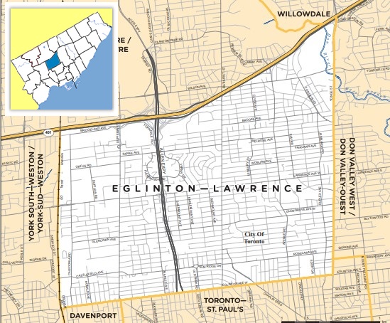Created in 1999, Eglinton-Lawrence in situated in the heart of central Toronto. The district is bordered by roads like Highway 401, Yonge Street and Eglinton Avenue West. The residents are predominately middle class, and many small businesses are integral to the area’s local economy.