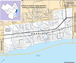 Oakville is a provincial electoral district that was created in 1999 from the ridings of Halton Centre and Oakville South. It is situated along the northwestern edge of Lake Ontario and encompasses part of the Regional Municipality of Halton and part of the town of Oakville.