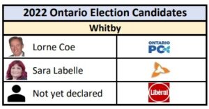 Lorne Coe, current MPP, seeks to retain the seat for the PC. He was first elected in the 2016 by-election to represent the riding of Whitby-Oshawa. In 2018, Coe was re-elected with 45% support of the electorate (26,471 votes). The NDP took 36%, but the PC’s margin of victory was 5,313 votes. The Liberals only managed 12%.