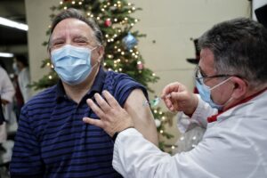 In the pic, François Legault when he got the vaccine (from his Twitter profile – @francoislegault)