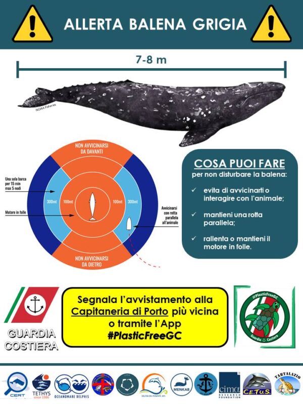 Anche la Guardia Costiera, che ha monitorato gli spostamenti dell’animale ‘scortandolo’ lungo tutto il tragitto, è intervenuta solo in caso di effettivo pericolo (come il rischio di cattura accidentale in attrezzi da pesca). Questa collaborazione ha portato anche a diffondere un codice di condotta per chi dovesse avvistare l’animale. La raccomandazione è di lasciarlo indisturbato, mantenendosi ad almeno 100 metri di distanza senza creare assembramenti di barche.