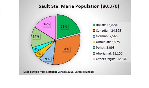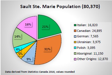 The district has a strong economic foundation in the industries of steel-making and forestry. The region was popular among immigrant groups, many of which still remain. According to Statistics Canada, in 2016 (most current data available), those who identify of Italian descent make up 21% of the population. That translates to 16,820 residents, the highest concentration of Italians in northern Ontario.