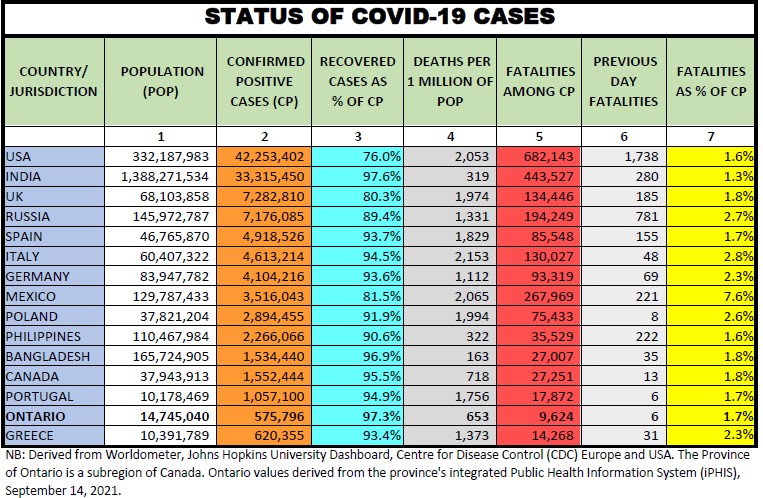 Here we provide a daily update of the data available for select countries and jurisdictions as of September 14, 2021, at 8:15 pm EST.