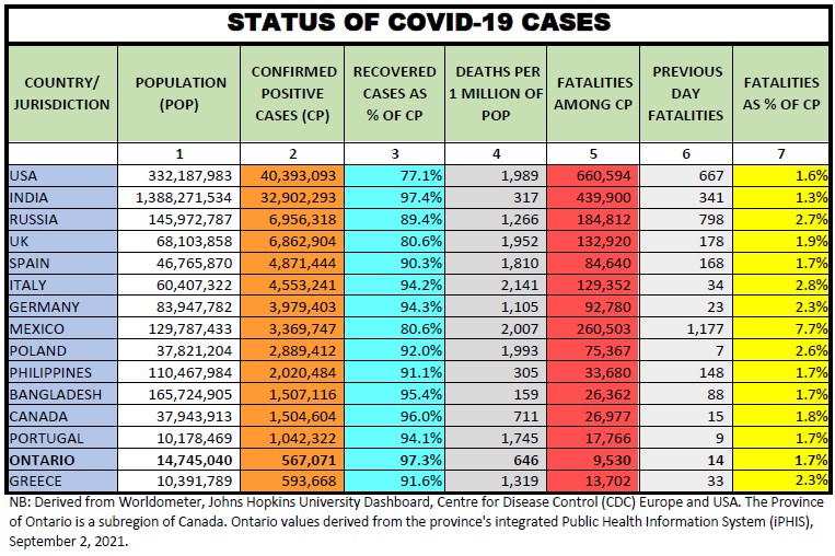 Here we provide a daily update of the data available for select countries and jurisdictions as of September 2, 2021, at 4:00pm EST.