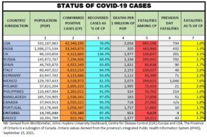 Here we provide a daily update of the data available for select countries and jurisdictions as of September 15, 2021, at 4:30 pm EST.